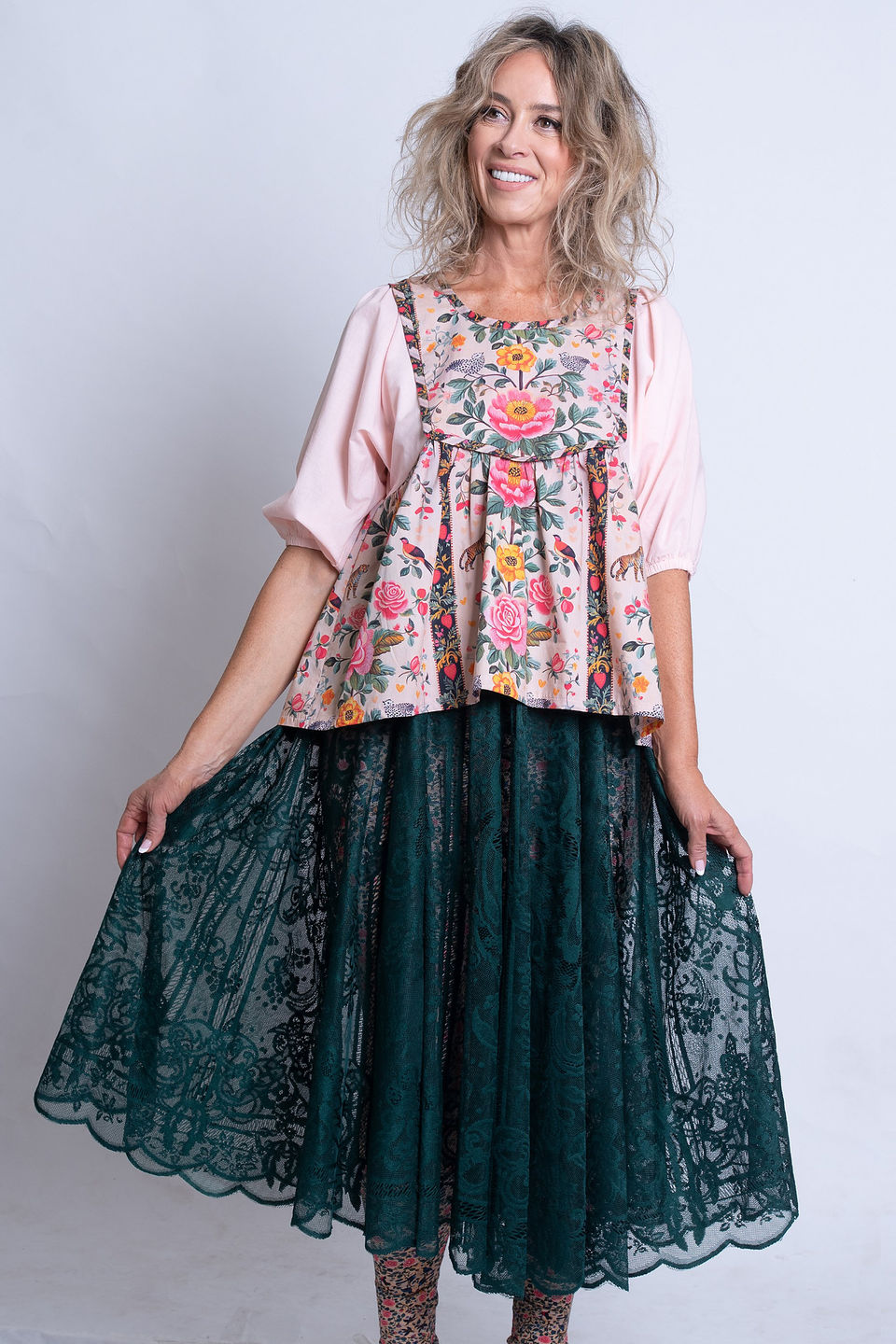 Discover the charm of timeless elegance with our Pink Rose Nostalgia Top. This easy fit peplum top features a signature rose print bodice complemented by plain balloon sleeves, creating a beautiful folk style. Made from 100% cotton, the top ensures comfort and breathability, perfect for casual outings or special occasions. For lasting beauty, we recommend hand washing and drying in the shade. If you dont see your size, please message us and our atelier may be able to make you one .
