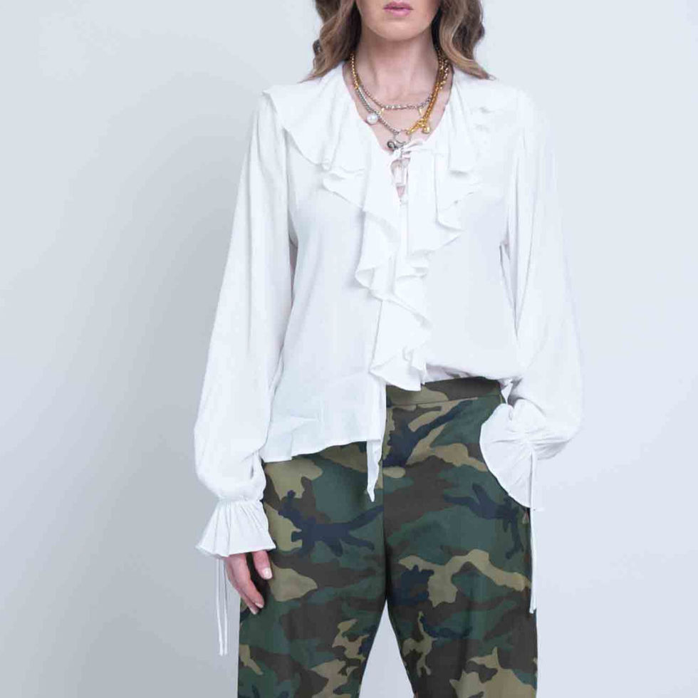 Discover the super cool camo, baggy barrel leg trouser at Sheryl May, It is thoughfully designed with side pockets ,and a distinctive side stripe detail for effortless style. They are easy fit with a flattering flat front waistband and elastic back, ensuring comfort and movement throughout your day. If you dont see your size, let us know and we may be able to create you a pair in our Atelier.